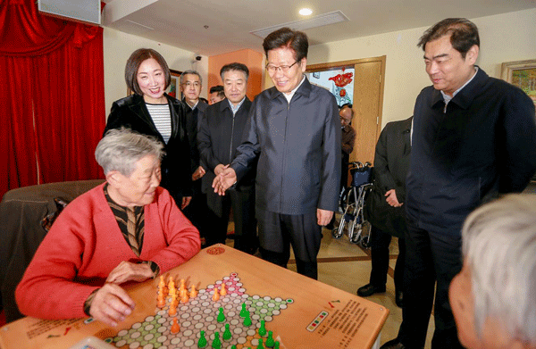 张春贤强调,要坚持以习近平新时代中国特色社会主义思想为指导,认真学习贯彻党的十九届四中全会精神,积极应对人口老龄化,加快建设居家社区机构相协调、医养康养相结合的养老服务体系,不断构建养老、孝老、敬老的法治环境。