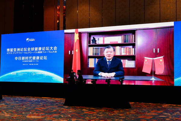 全国人大常委会副委员长陈竺向中日新时代健康论坛视频致辞。摄影/李润涛