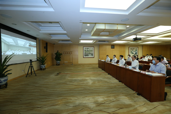 全国人大常委会副委员长张春贤5月31日下午在京出席科学技术普及法执法检查组视频会议。(全国人大教科文卫委供图)